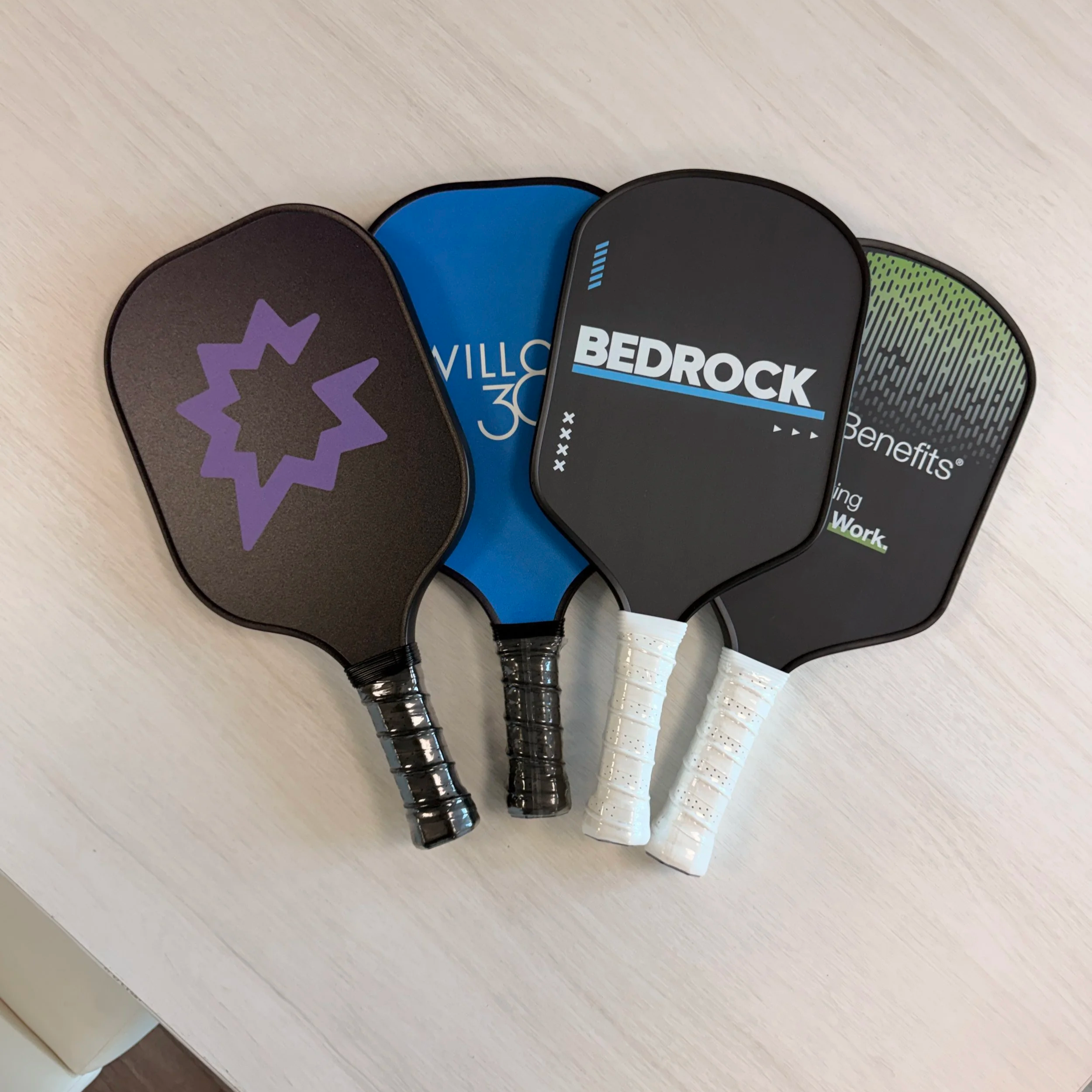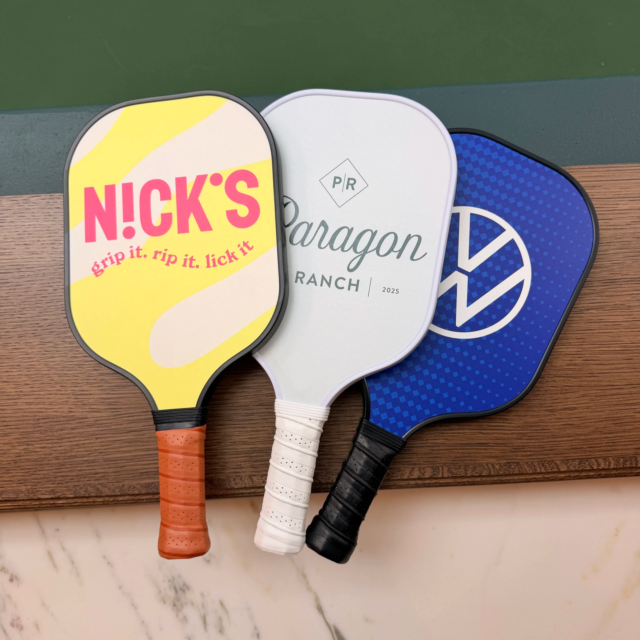 When ordering branded paddles, the goal is not to please one specific player. It is to choose something most people will enjoy using.
